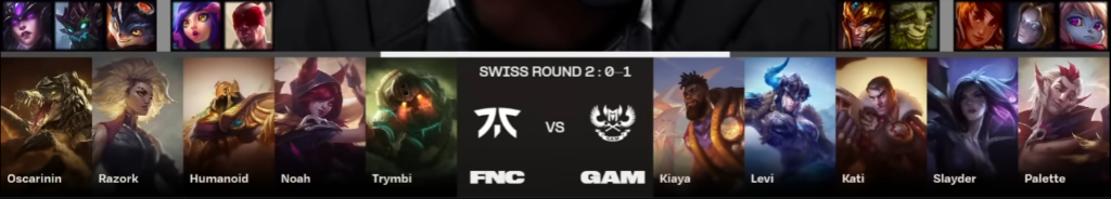 GAM est sorti des play-in dans la douleur et doivent normalement s’incliner face au seed 2 européen : les vietnamiens ont notamment perdu 2-0 contre LOUD avant de remonter du loser bracket, leur niveau mécanique et leur cohésion d’équipe sont en-dessous de ceux des FNC.