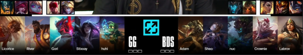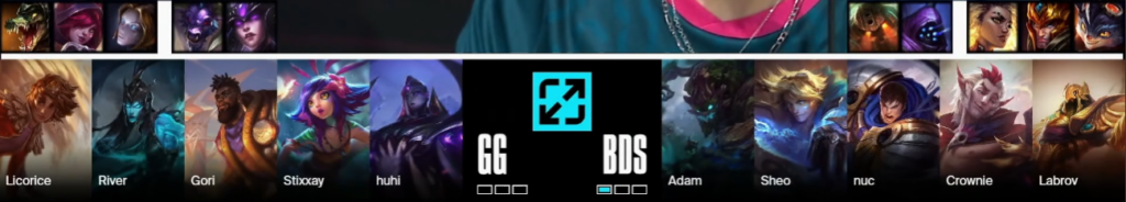 Malgré quelques erreurs et une game 2 compliquée du côté de BDS, le BO est globalement une démonstration : Golden Guardians a un jeu centré sur leur tandem mid-jungle, mais Gori et River ont été réduits au silence par notre duo français nuc et Sheo qui ont montré l’étendue de leurs talents et leur créativité tout au long des parties. Le BO a duré 2h20 à peine. La botlane a été très solide également, ne concédant aucune ressource à leurs adversaires directs et ayant un impact considérable en teamfights.